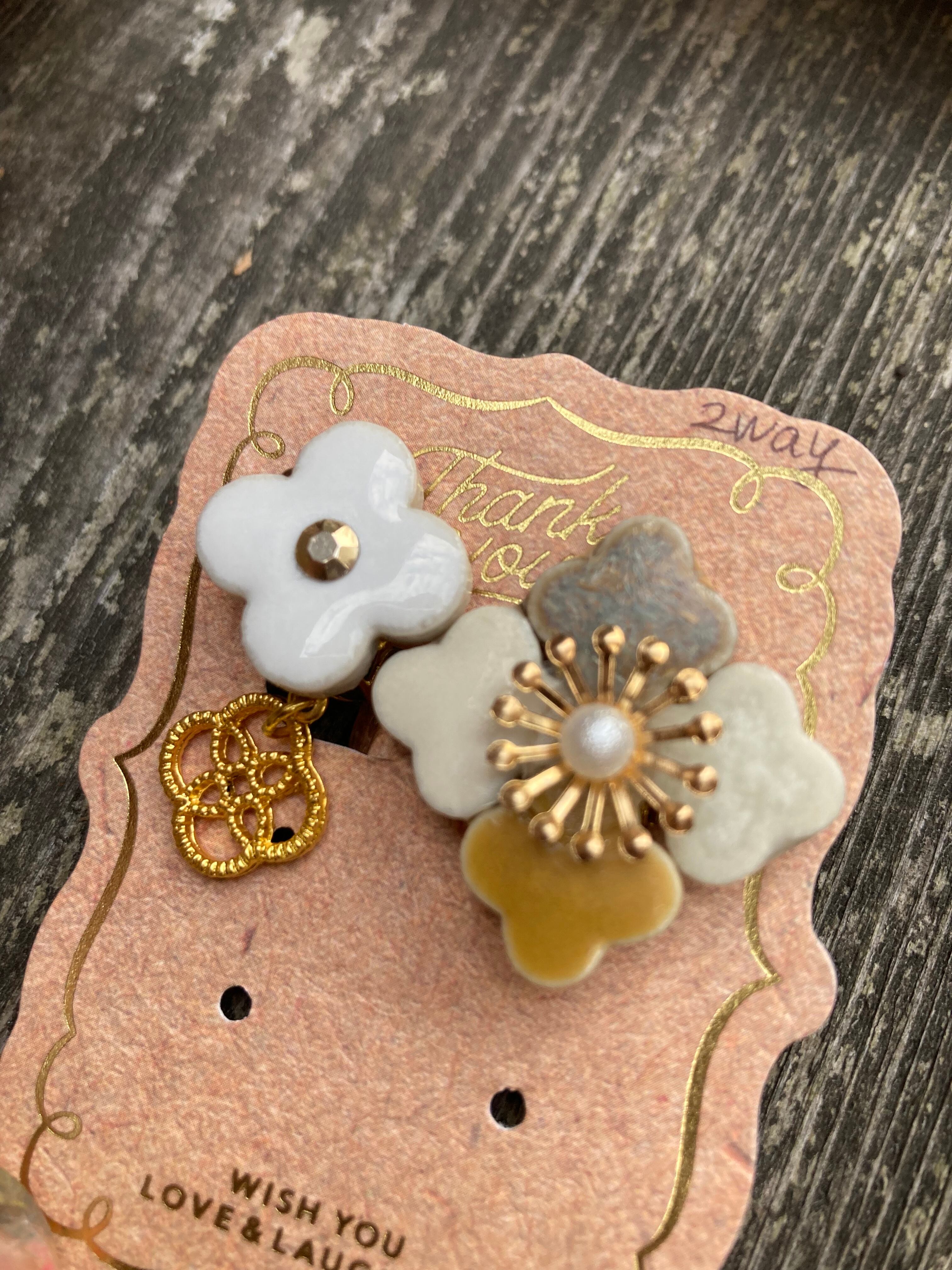 #美濃焼#タイル#フラワー#ナチュラル#ゴールド#大人かわいい#おしゃれ#アクセサリー#イヤリング #クリスマスプレゼント#クリスマスギフト